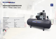 Verkstadskompressor Weber 400 V / 10 bar / 500 l tank